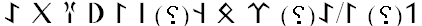 Transliteration: p I/А r2 b2 ŋ2 s2 I y1 g1 d2 A