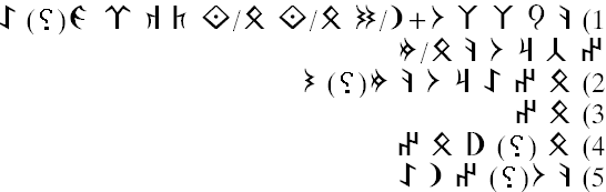 1) k2 y2 l2 l2 U+n1/d1 b2/ŋ1 b2/ŋ1 t2 k1 r2 g2(?) A n2 č r1 U k2 b2/m