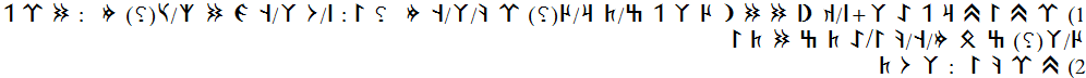 1) r2 t1 I t1 r1 p A l2+s2/k1 y1 d1 d1 n1 Ü l2 p z/t2 r1/Ü(?) r2 k2/l2/ŋ2 m ? I : s2/U l2/ŋ2 g2 d1 ič/s1(?) m : d1 r2 p Ü/l2(?) z b2 m/ŋ2/k2 I/A t2 z d1 t2 I