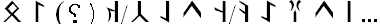 2. The fifth rune is not clear. It could be k2, or ŋ2. For the Altai variant of the runic writing, it is characteristic taht there are two signs for ŋ: (Nevskaya, in print). The rune for ŋ used in the Orkhon and Enisei variants is used here for ŋ2, i.e. it is used with in words with front vowels. The second sign ŋ1 has the form of a circle, or an oval. It is used in words with back vowels. Consequently, we should read the word as (ä)ŋ, and not (a)ŋ ‘game, wild animals used for food’. In fact, we do meat this word as (ä)ŋ in Irk Bitig 31. According to Clauson, it is not clear how this word is related to the Mongolian aŋ, the same semantics. The modern word aŋ in all the North-Eastern Turkic languages could be a Mongolian loan (Clauson 1972: 166).